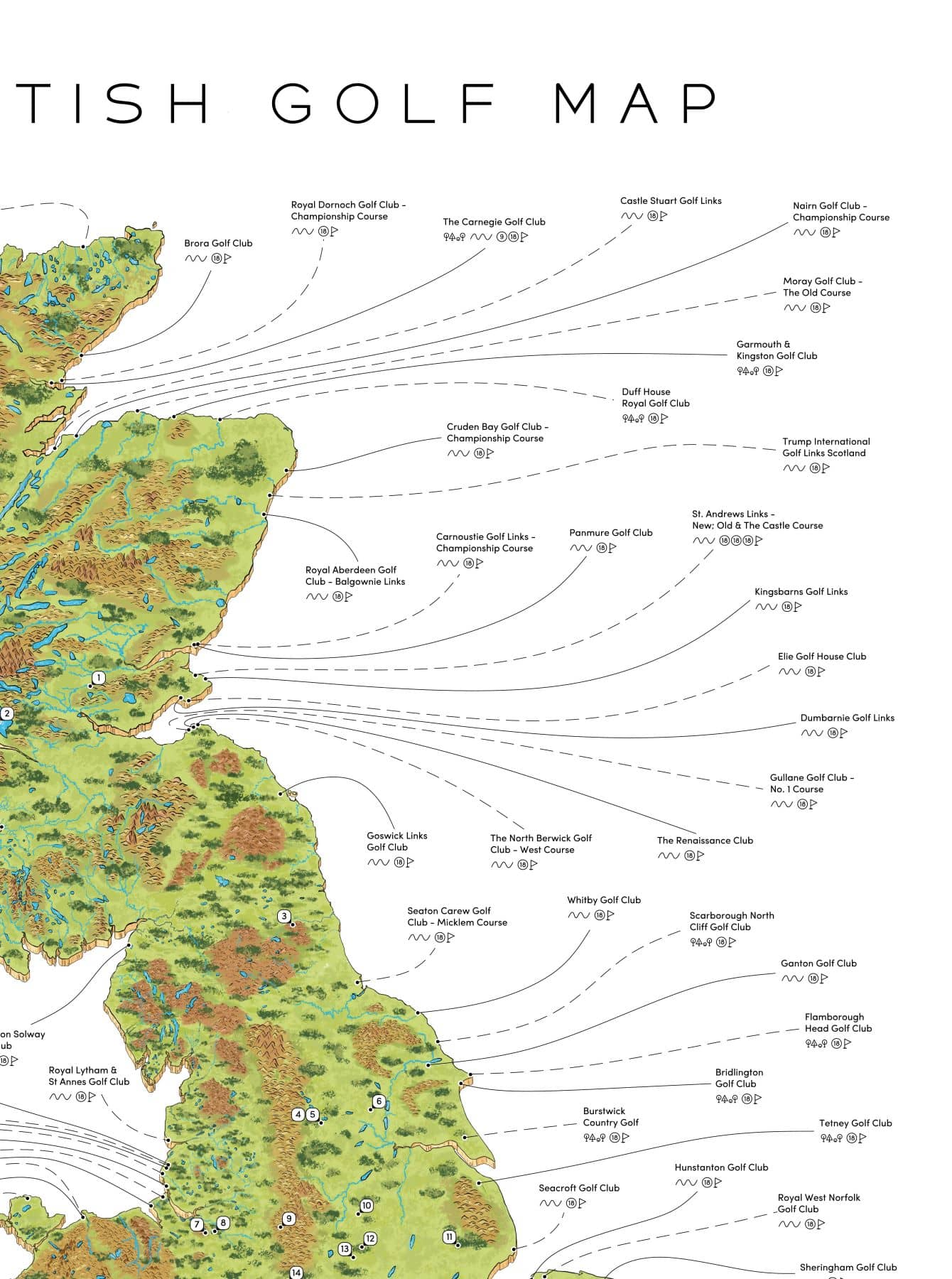 ๐๏ธโ๏ธ 162 of the top golf courses in Britain mapped out by hand.