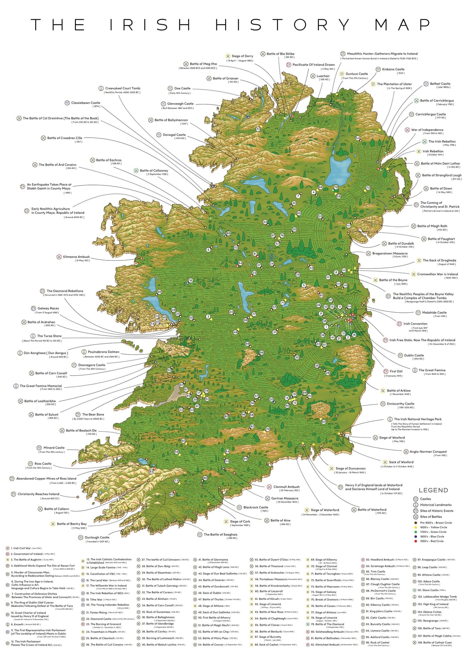 ๐ฐ 192 of the top historical locations in Ireland & NI mapped out by hand.