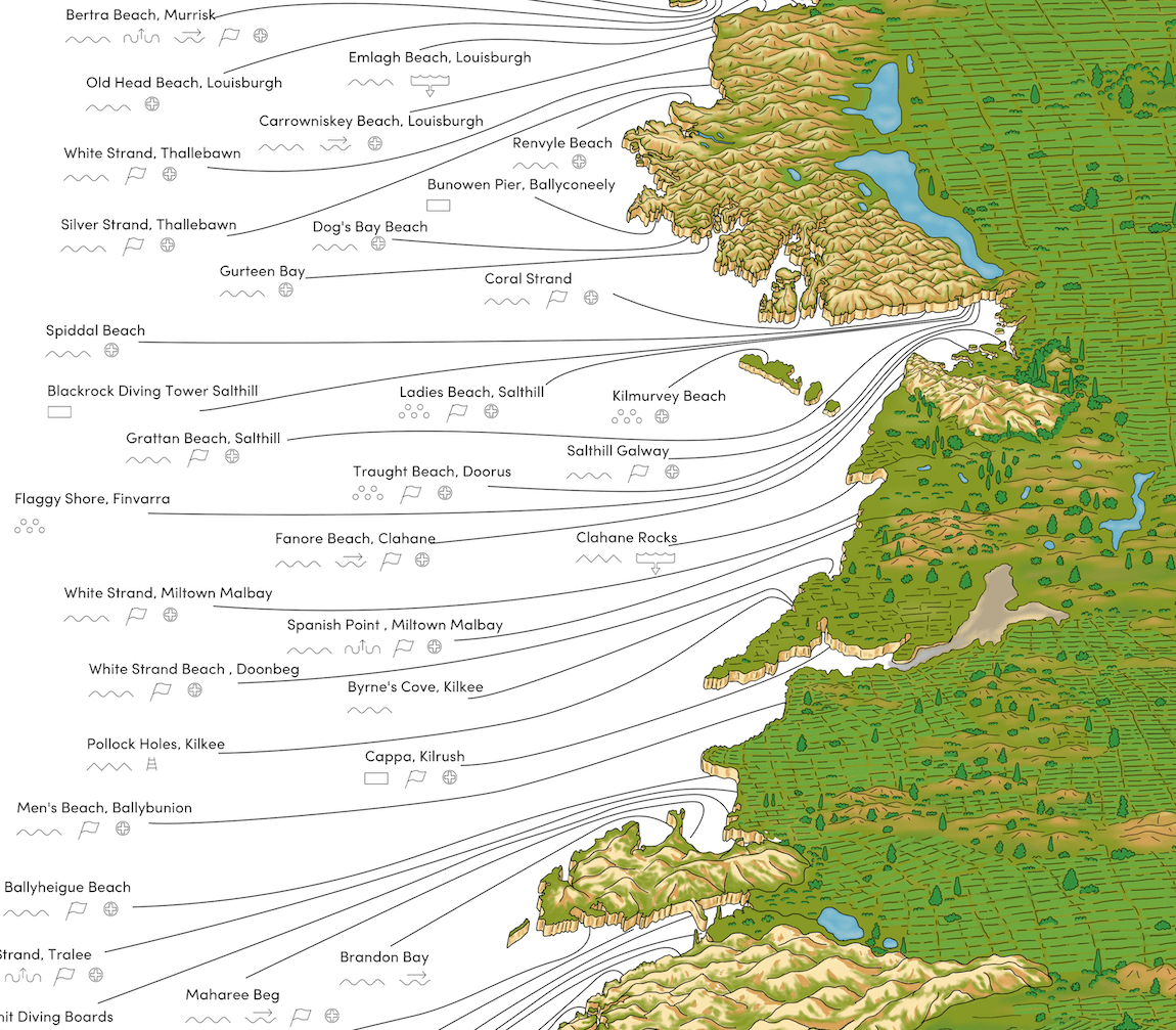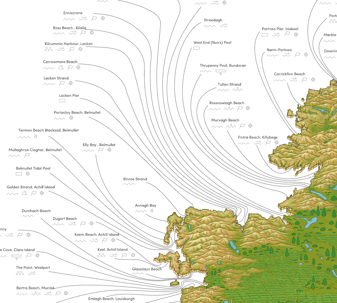 The Second Edition of the Irish Sea Swim Map now includes 193 of Ireland's best sea swimming spots. In particular we've improved coverage of spots in Cork, Kerry, Down and Antrim based on customer feedback.