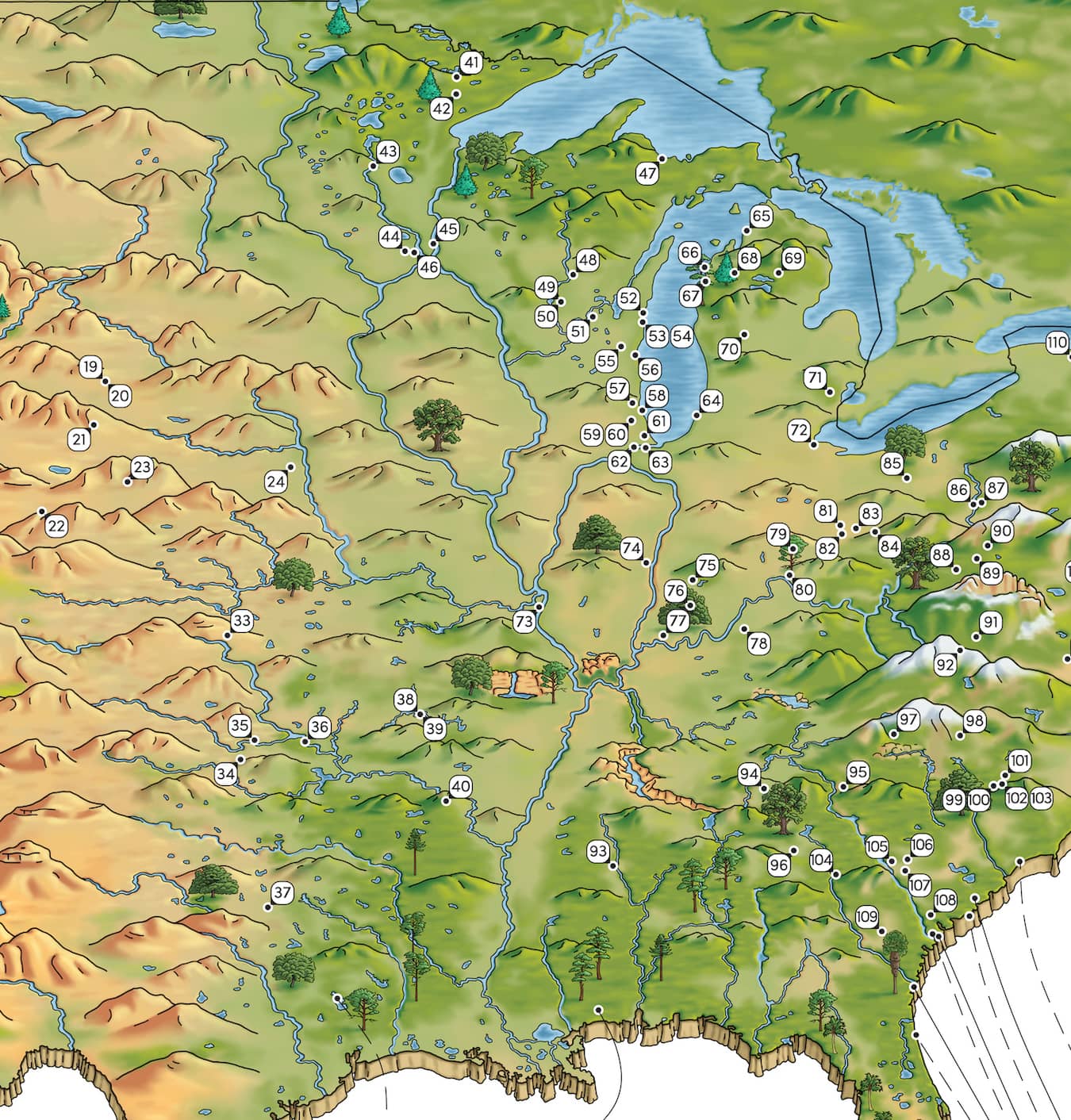 ✏️ Hand-drawn design of the Spectacular US Terrain. It took over a 120 hours of design time to create this stunning, detailed design of the US to act as a background for the map. 100% Hand-designed in house for this map.