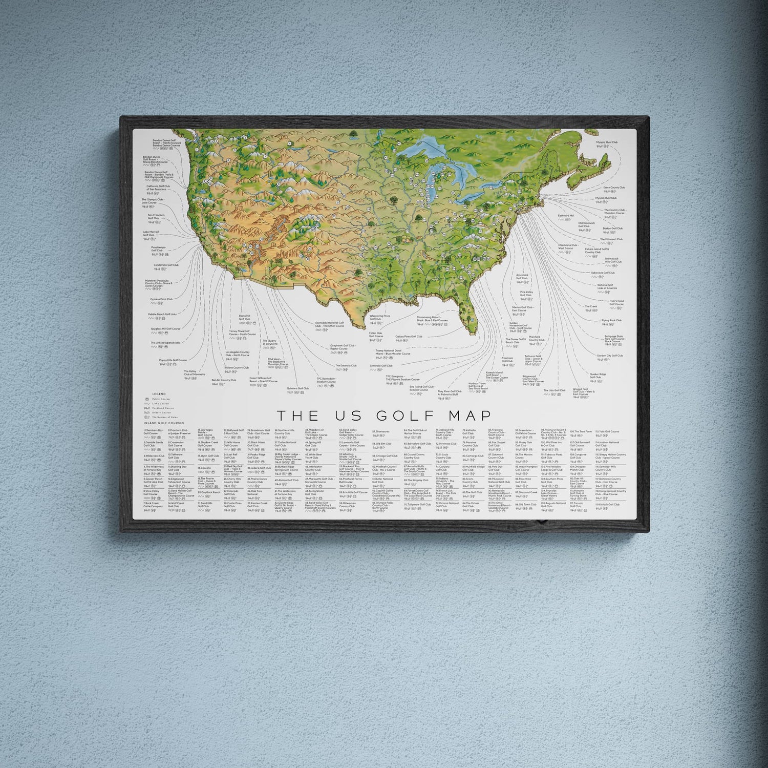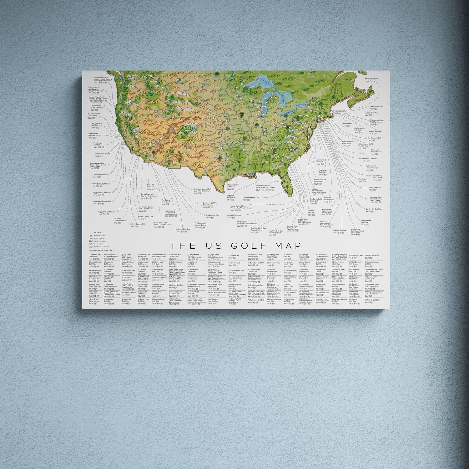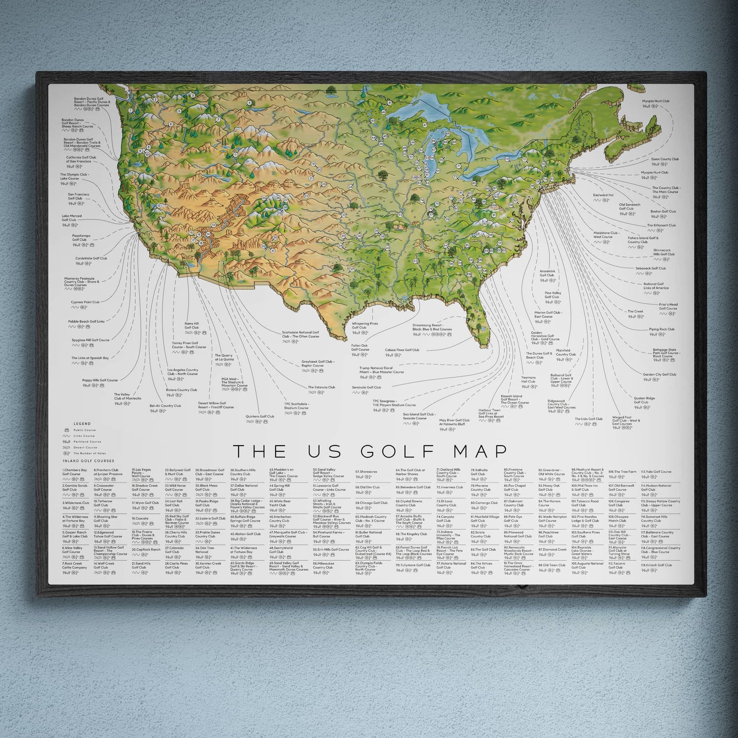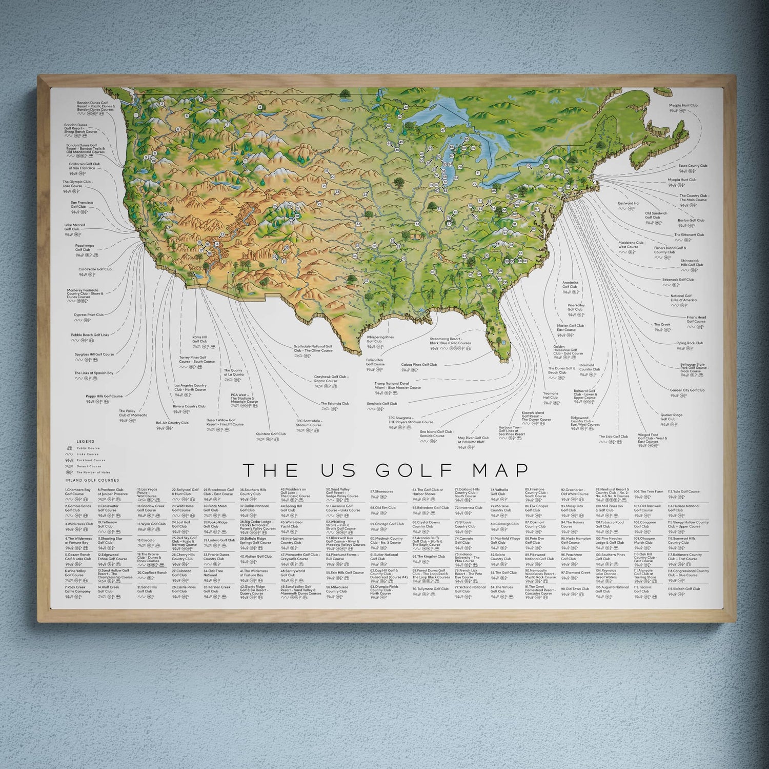 🏌️‍♂️Inspiration to travel and discover incredible new golf courses around the States. Planning a trip? Glance at the map on your wall and find the top courses in the area.