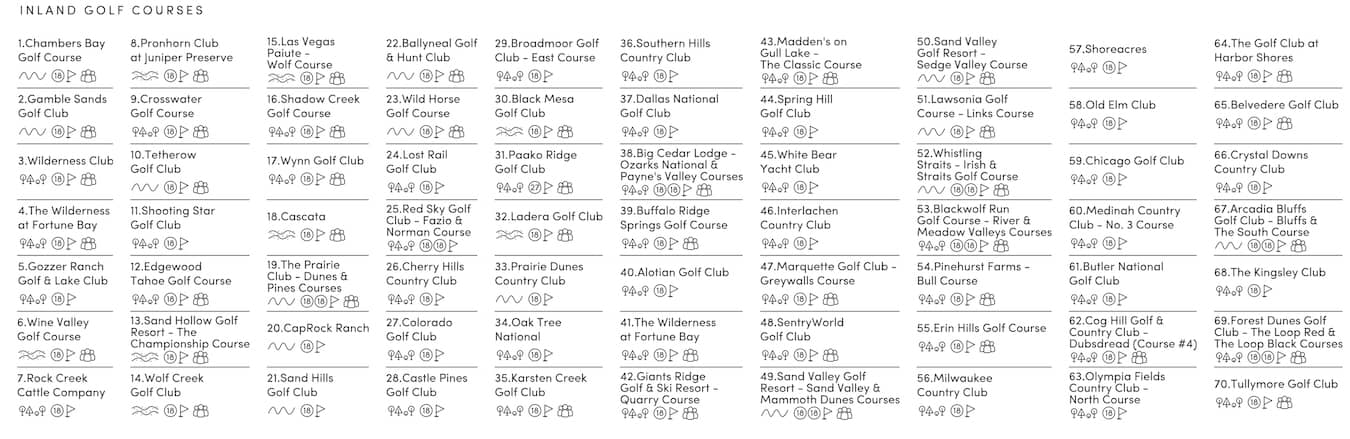 ⛳ 189 of the top US golf courses, carefully researched & mapped. Icons show course type, number of holes and whether it is public for every course.